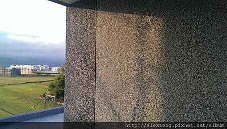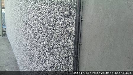 3. 施作完洗石子的面與未施做, 只有泥做粉光打底的面, 在我的案子中大概有2~3公分的落差. 所以當一道牆, 在不同的面有不同的外牆處理時, 交界的介面細節就要小心處理. 我的案子中, 有一片外牆, 垂直地面區域的要做白色塗料, 平行地面的區域要做洗石子. 洗石師傅是說這樣在側面時, 洗石子區域就會露出側邊, 美觀上就會有疑慮. 提供給各位參考 ~