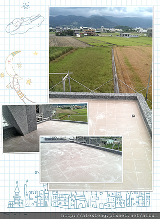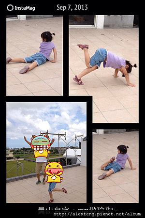 上圖: 女兒看到頂樓地磚鋪設完成, 整個大開心, 手舞足蹈, 還現場做起瑜珈 哈哈!