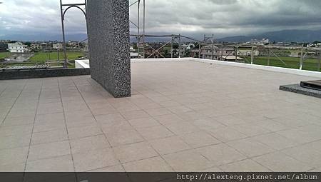 上圖: 三樓後方露臺的室外地磚, 這露臺約有4.6M*3.2M的面積,