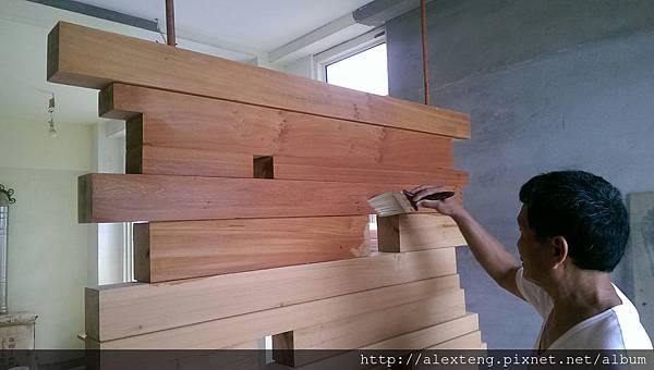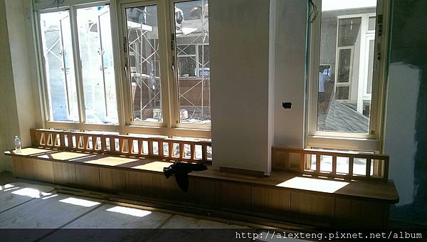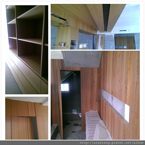 主要是新居進行中的木作裝潢工程及油漆施作,